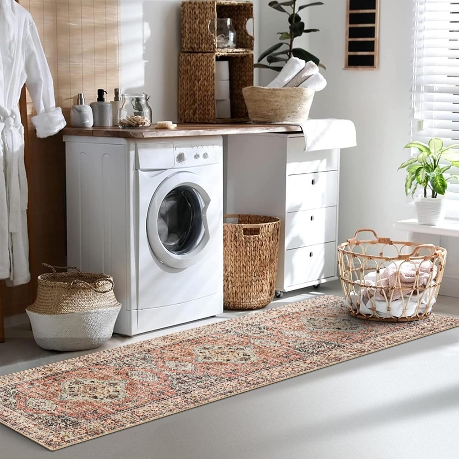 Introducing the Lahome Oriental Washable Kitchen Runner Rug, a stylish and functional addition to your home decor! This 2×8 runner is perfect for hallways, adding a touch of vintage charm with its beautiful peach and orange color scheme.