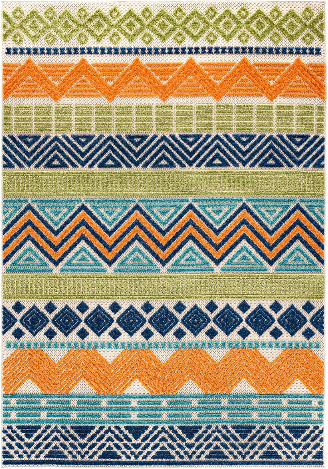 Rugshop Marbella Contemporary Boho Non-Shedding Outdoor Rug Patio Deck Backyard Indoor/Outdoor Area Rug 5′ x 7′ Multi
